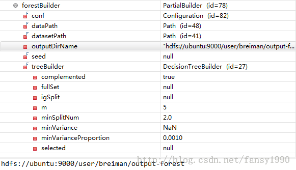 2. 新建PartialBuilder,设置相关的参数,得到下面的forestBuilder的值如下: