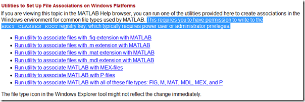 3.找到Associating Files with MATLAB on Windows Platforms(2011的帮助是这样,不同版本可能不一样)的对应解释