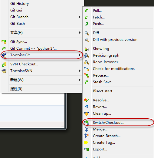 打开 Package Control子文件夹,右击,在弹出的右键菜单中选择 TortoiseGit>Switch/Checkout: