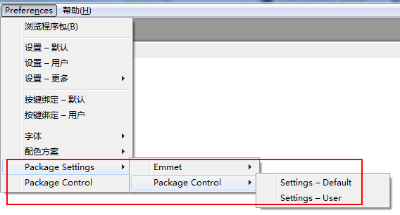 重新启动 Sublime Text 3,可以在 Preferences 菜单下看到 Package Settings 和 Package Control 菜单项,表明 Package Control 安装成功。