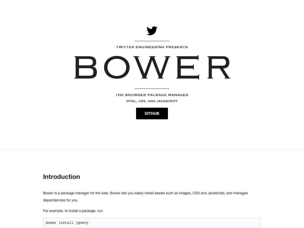 Bower is a package manager for HTML, CSS, and JavaScript. It manages dependencies for you, and allows you to easily install assets such as images, CSS, and JavaScript.