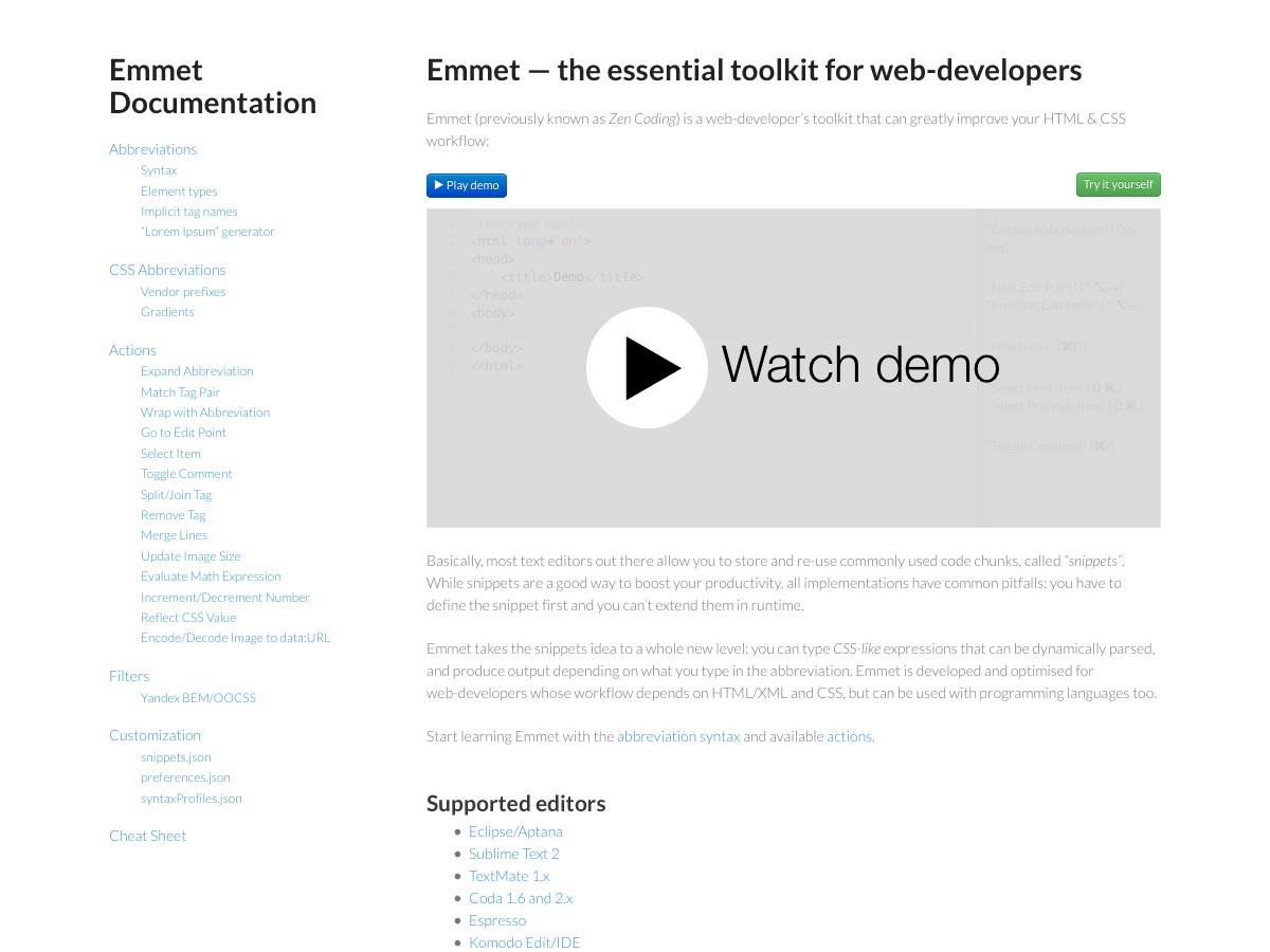 Emmet is a toolkit for web developers, previously known as Zen Coding. It will greatly improve your HTML and CSS, taking snippets to a whole new level (CSS-like expressions that can be dynamically parsed and more).