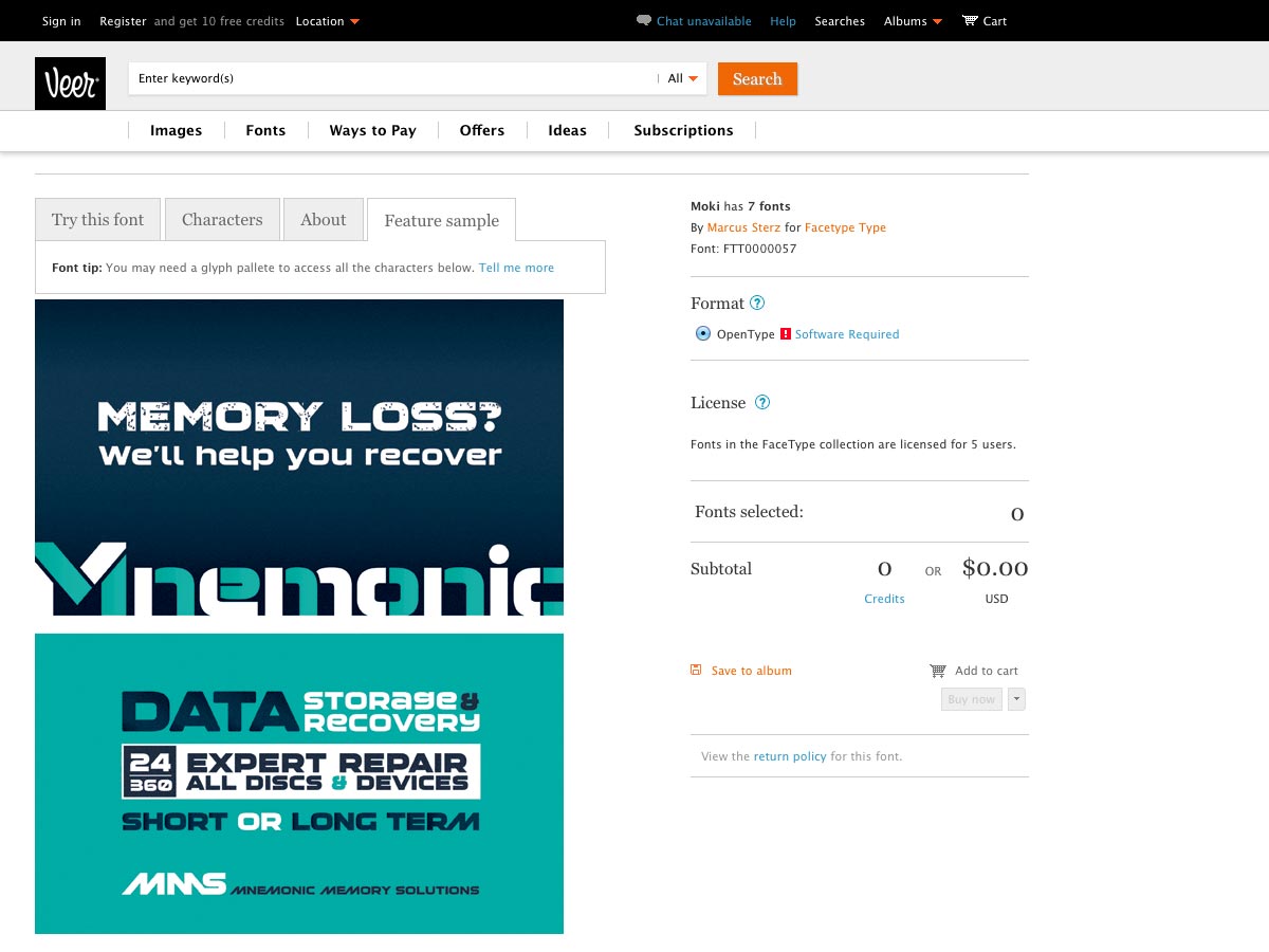 Moki comes in seven different styles (Base, Cut, Dust, Lean, Mono, Soft, and Uni), perfect for display use.
