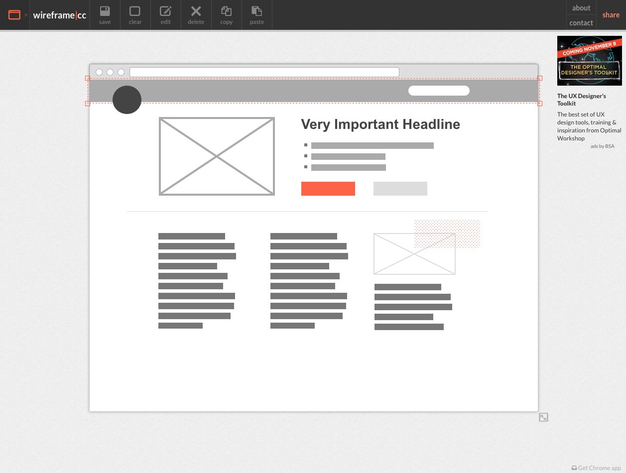 Wireframe.cc is a minimalist wireframing app that’s both a pleasure to use and beautiful to look at. Controls are simple and intuitive, and the end result is quite attractive.