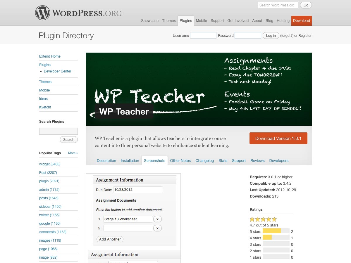 WP Teacher is a new plugin for educators that lets them integrate course content into their WP site. It supports two post types (assignments and events), widgets for assignment lists & event lists, and more.