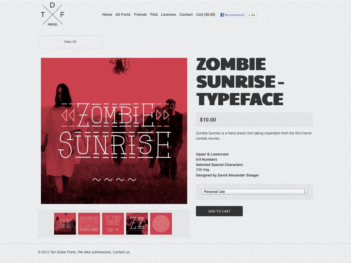 Zombie Sunrise is inspired by vintage horror films from the 60s. It’s hand-drawn and was designed by David Alexander Slaager.