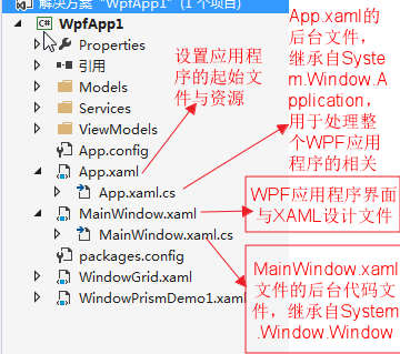 第四、在App.xaml中的“StartupUri”属性可以指定项目运行时的启动窗体。如下图中StartupUri="MainWindow.xaml"
