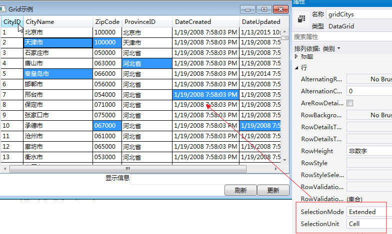 <DataGrid x:Name="gridCitys" Grid.Row="0" HorizontalAlignment="Left" VerticalAlignment="Top" AutoGenerateColumns="False" SelectionUnit="Cell" SelectionMode="Extended">