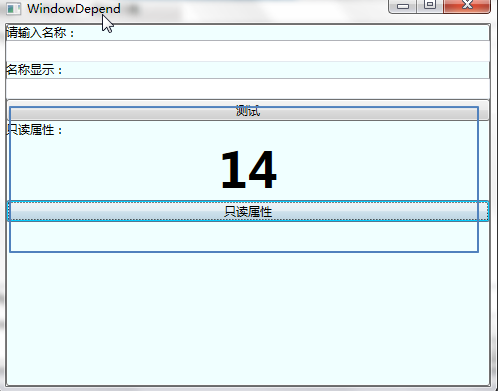 public partial class WindowReadOnly : Window { public WindowReadOnly() { InitializeComponent(); //用SetValue的方法来设置值 DispatcherTimer timer = new DispatcherTimer(TimeSpan.FromSeconds(1), DispatcherPriority.Normal, (object sender, EventArgs e) => { int newValue = Counter == int.MaxValue ? 0 : Counter + 1; SetValue(counterKey, newValue); }, Dispatcher); } //属性包装器,只提供GetValue public int Counter { get { return (int)GetValue(counterKey.DependencyProperty); } } //用RegisterReadOnly来代替Register来注册一个只读的依赖属性 private static readonly DependencyPropertyKey counterKey = DependencyProperty.RegisterReadOnly("Counter", typeof(int), typeof(WindowReadOnly), new PropertyMetadata(0)); }