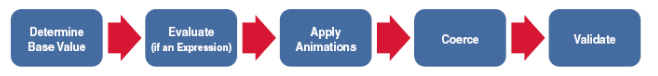 - 第一步,确定Base Value,对同一个属性的赋值可能发生在很多地方。比如控件的背景(Background),可能在Style或者控件的构造函数中都对它进行了赋值,这个Base Value就要确定这些值中优先级最高的值,把它作为Base Value。