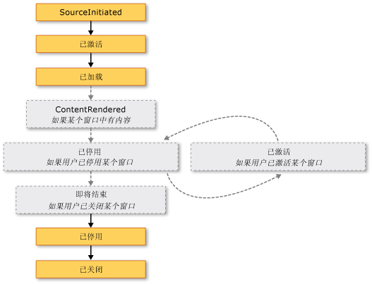 当第一次打开窗口时,只有在引发了 Activated 事件之后,才会引发 Loaded 和 ContentRendered 事件。 记住这一点,在引发 ContentRendered 时,便可认为窗口已打开。
